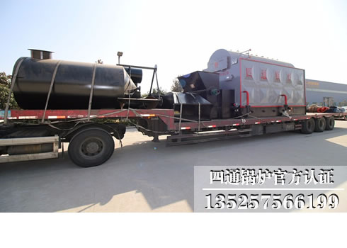 DZL生物質臥式蒸汽鍋爐,是一種臥式三回程水火管混合式鍋爐,在鍋筒內布置一束螺紋煙管。爐膛左右二側裝有光管水冷墻。采用輕型鏈條爐排實現機械加料,配有鼓風機、引風機進行機械通風,并裝有刮板式出渣機實現自動出渣。該爐前后拱采用新型的節能技術爐拱。燃料從料斗落到爐排上,進入爐膛燃燒后,火焰經過后拱折射向上通過本體兩側燃燼室折向轉到前煙箱,再由前煙箱折回鍋內管束,通過后煙箱進入省煤器,然后由引風機抽引通過煙道至煙囪排向大氣。